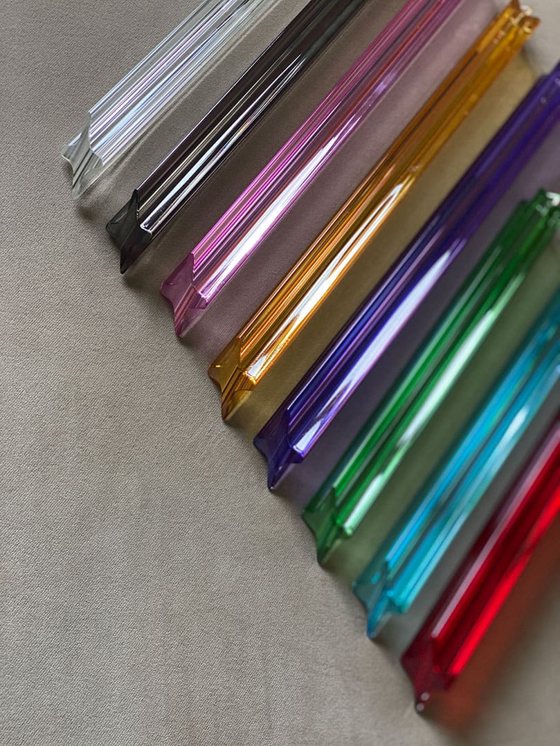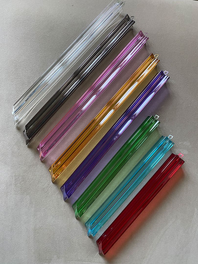 Dimension glasses: 71 prisms, 28 cm in height + 40 prisms, 10 cm in height.