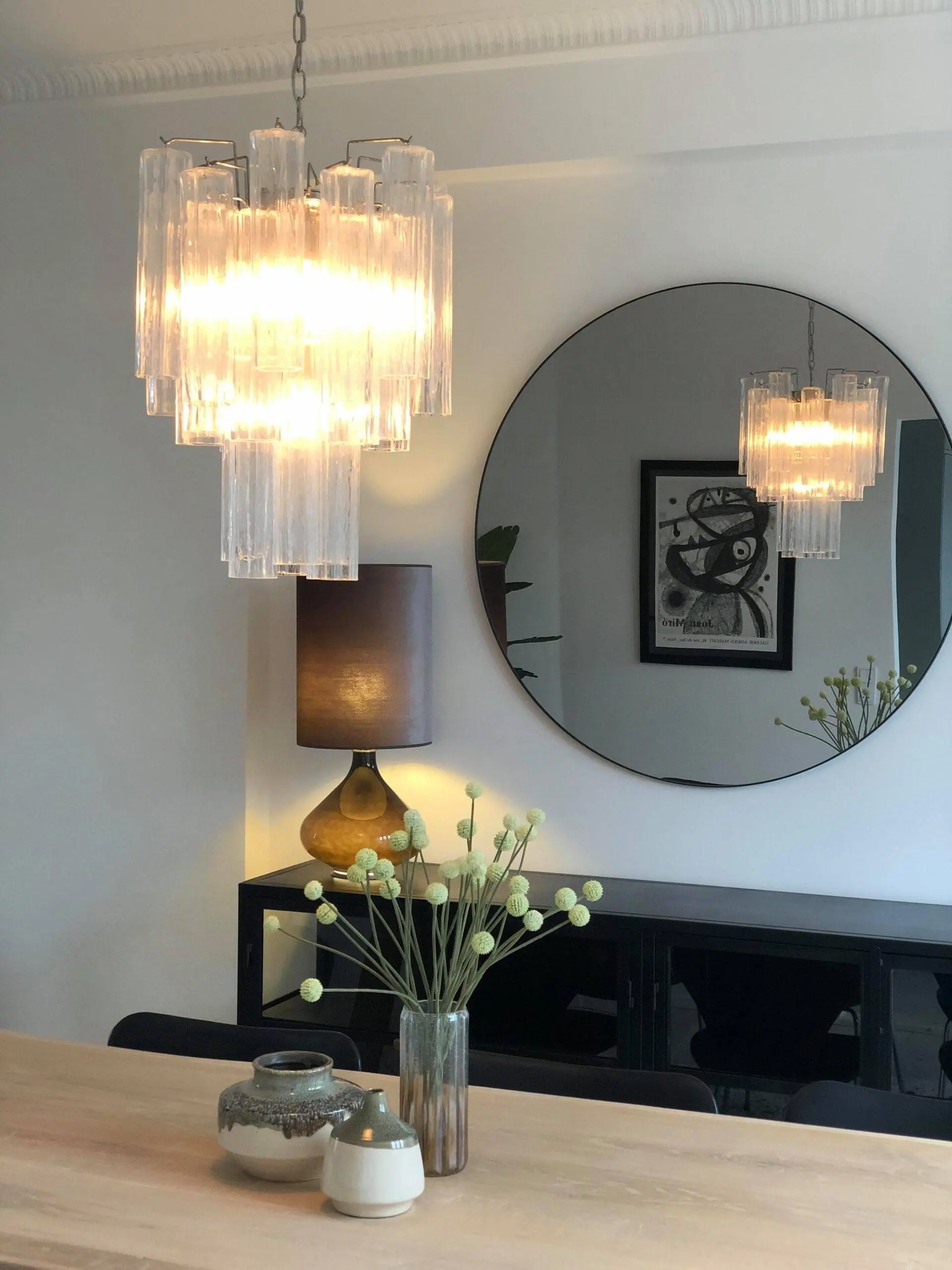 Dimensions: 120 cm in height with chain (can be shortened and extended) 63 cm in height without chain, 45 cm in diameter.