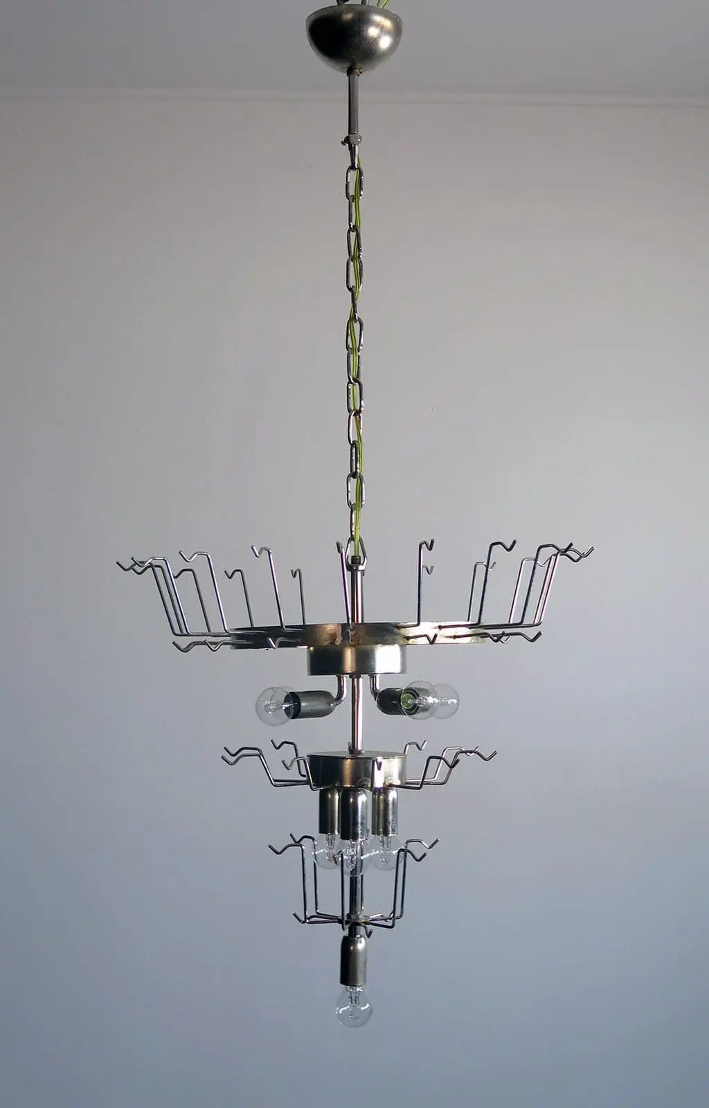 Dimensions: 155 cm in height with chain (can be shortened and extended) 85 cm in height without chain, 80 cm in diameter.