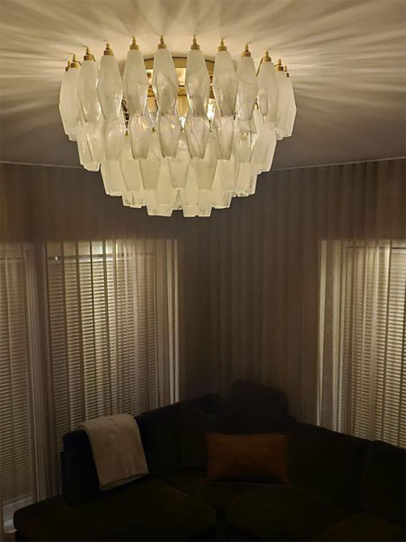 Light bulbs: 7 light bulbs: E14 dimension (not included in the sale) – also works for dimmers.