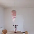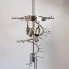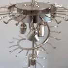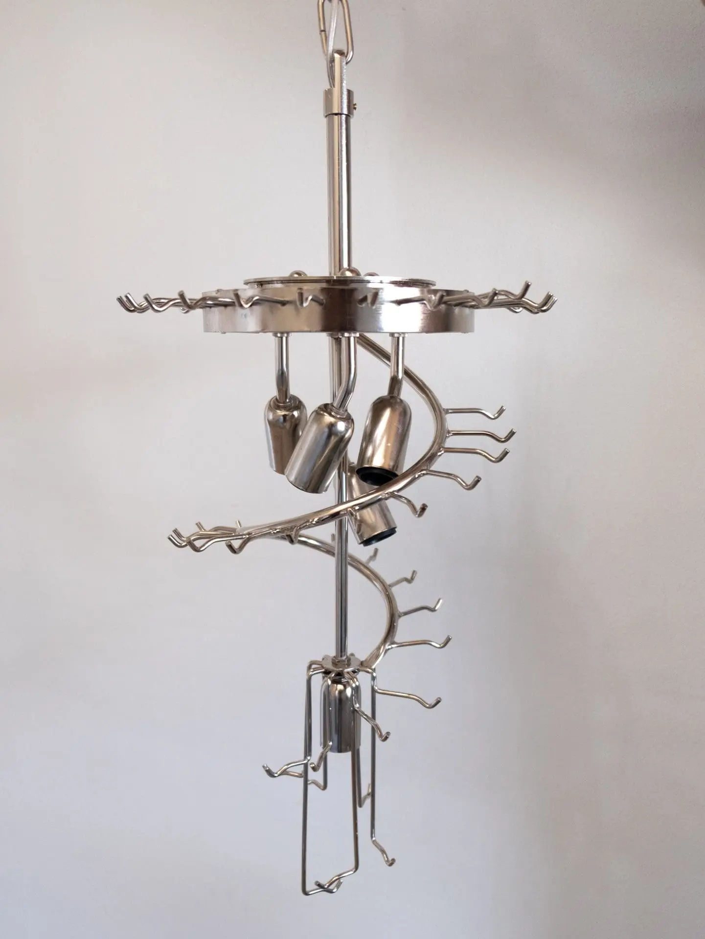 Dimensions: 160 cm. in height with chain, (can be shortened and extended) 89 cm in height without chain, 32 cm in diameter.