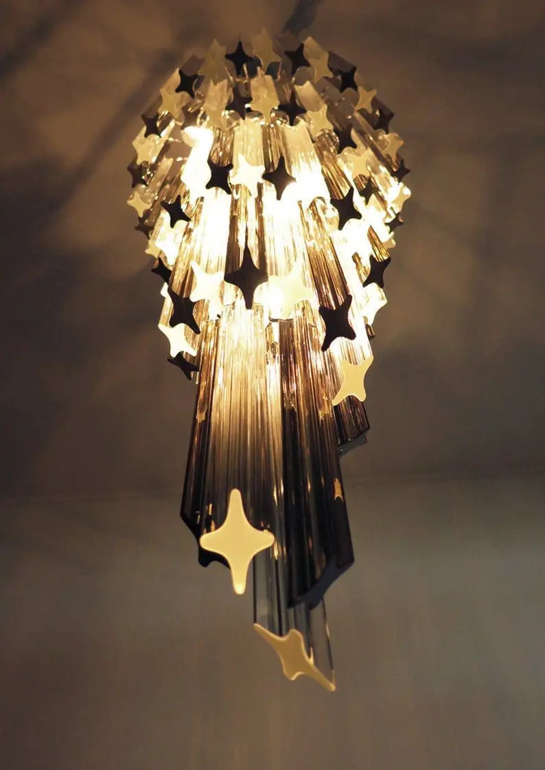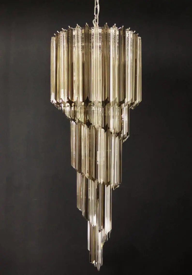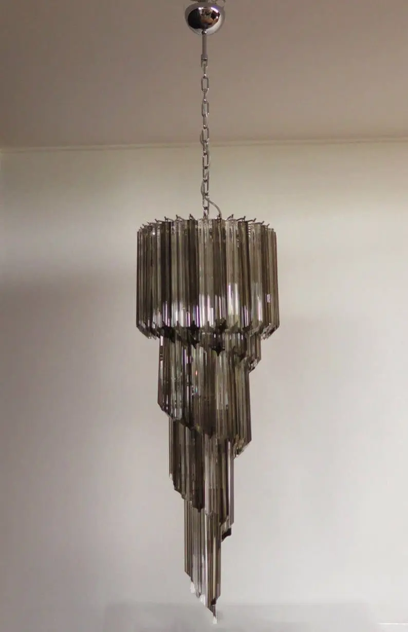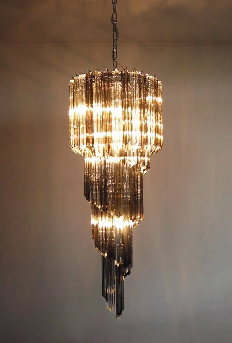Murano Chandelier – Spiral – 86 prisms – Smoked/Transparent
