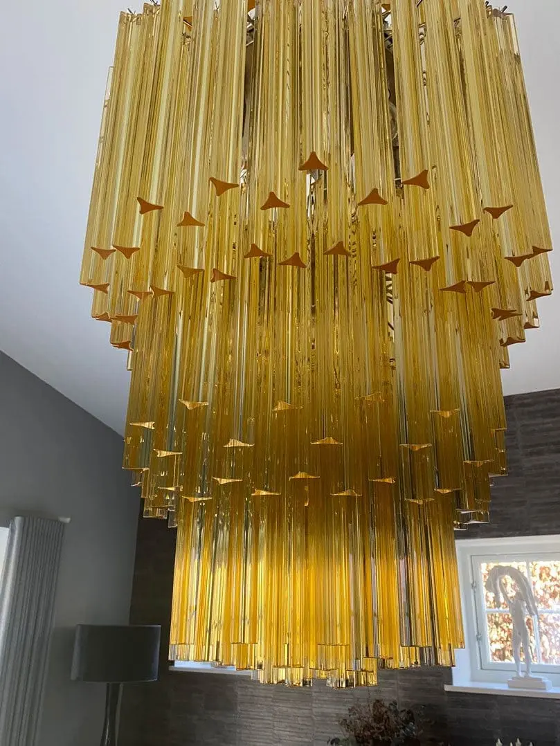 Dimension glasses: 167 prisms: 28 cm in height x 3 cm in length + 75 prisms: 35 cm in height x 3 cm in length.